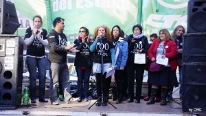 Pasadas las 14 horas y desafiando el frio invernal Carolina Ocar, referente de la Junta Interna ATE-INDEC y Secretaria de Comunicación de CTA Nacional, dio comienzo al acto enumerando un sinfín de saludos y adhesiones que llegaron de todo el país. Una vez más Ocar afirmó que “como hace 8 años, venimos a denunciar la manipulación y la mentira. Los trabajadores somos los protagonistas de esta resistencia y no vamos a parar hasta que se vaya la intervención y su patota”.