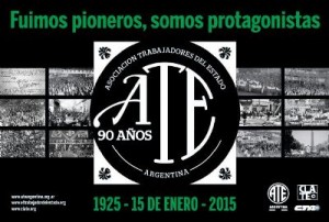 El Consejo Directivo Nacional de ATE invita este jueves 15 de enero a las 20, en el histórico Teatro Verdi de la ciudad de Buenos Aires (Almirante Brown 736 del barrio de La Boca), a participar de un brindis por el 90 aniversario.