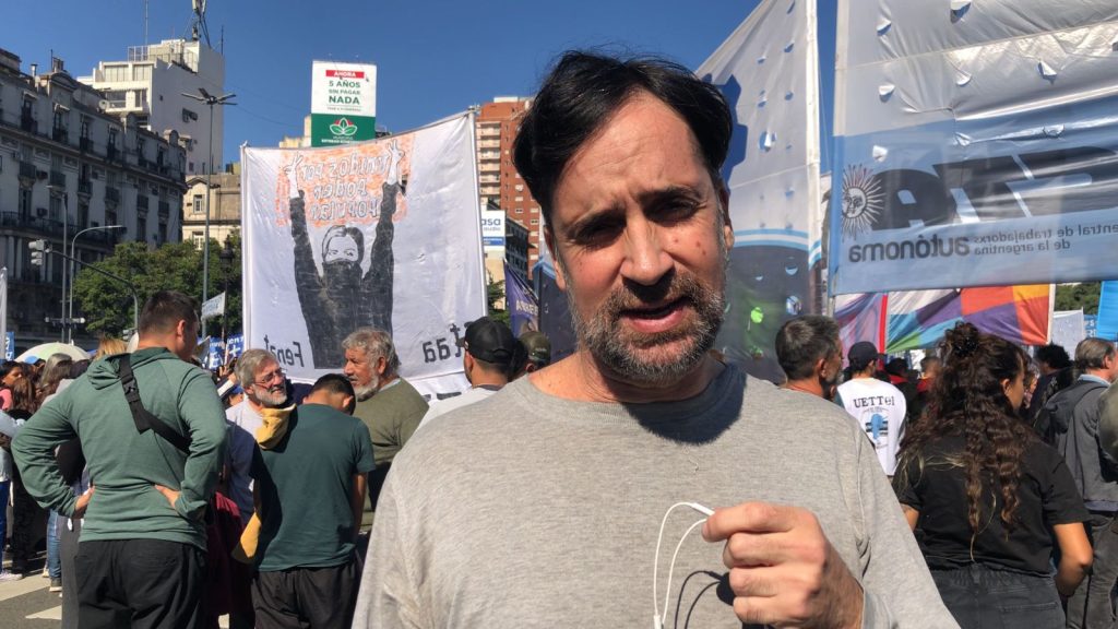 «Hoy, como todos los años en el primero de mayo, nos encontramos en la calle con un día de lucha para reivindicar las políticas que se vienen llevando adelante desde el sector de los trabajadores. Este año es especial porque la consigna es «Fuera FMI», que es lo que condiciona todo tipo de política: laboral, sanitaria, educativa, alimenticia y habitacional. No podemos pelear por mejores condiciones laborales si no rompemos con el Fondo Monetario. Entonces, hoy queremos decirle al Gobierno que de una vez por todas rompa con el FM para que realmente podamos sentarnos en los ámbitos correspondientes a discutir cómo son las mejoras y las políticas a llevar adelante desde la mirada de las y los trabajadores», expresó por su parte José «Pepe» Peralta, secretario General Adjunto de la Central porteña.