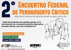 Este viernes, 27 de mayo, a las 15.30 horas tendrá lugar el 2do Encuentro Federal de Pensamiento Crítico, con participación virtual desde varias provincias del país.