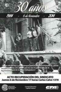 Esta semana se cumplen esos 30 años y abrá un acto central de recordación, que se hará en ATE Capital este jueves 6 de noviembre a las 17 horas.