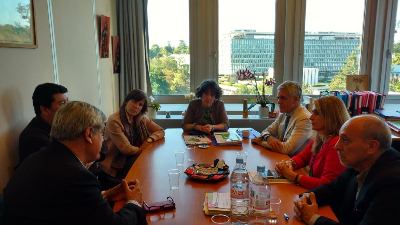 La delegación fue recibida por Corina Vergha, Directora del Departamento de Normas; Karen Curtis, Jefa del Servicio de Libertad Sindical y Horacio Guido, Jefe del Servicio de Aplicación de Normas y estuvo compuesta, entre otros, por Horacio Meguira, Director del Departamento Jurídico de la Central y de AAPM de la RA y Daniel Jorajuría, Secretario Gremial de la CTA-A.