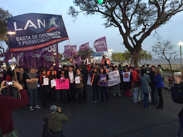 Asimismo y ante el hecho de que el directorio de Aerolíneas Argentinas ha publicado la noticia en la red virtual interna –intranet-, dando cuenta de que LAN » suspendió a un delegado gremial de manera  injusta”, queremos expresar también nuestro mayor repudio a tales manifestaciones por considerarlas un acto de hipocresía y cinismo político, ya que se trata del mismo directorio que desde que asumió el control y gerenciamiento de nuestra línea aérea de bandera en el año 2009, ha llevado adelante una férrea política antisindical contra activistas y delegados gremiales de todos los gremios aeronáuticos, entre los que se destacan el traslado ilegal de delegados, el despido de Cristian Fontana por haber pegado calcos convocando al paro que esta Central realizara en junio de 2012, o a las suspensiones sistemáticas y también ilegales que desde tiempo atrás viene aplicando sobre Marcelo Goyeneche, histórico delegado de base en Aeroparque y miembro de esta Central.
