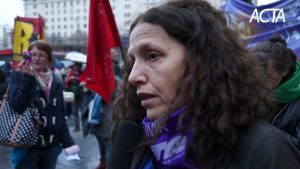 Entonces, la violencia laboral también se expresa en el despido y la precarización laboral, nosotros lo sabemos muy bien y está bueno recordar que -justamente porque somos además cuidadoras de vida y mucho de nuestro horario de trabajo lo destinamos al cuidado de los hijos y de los adultos mayores- nuestra posibilidad de incorporarnos al mercado de trabajo siempre es en una situación de desigualdad con respecto a los varones y por eso ocupamos la mayor parte de los trabajos precarios. Hay más de un 30% de la fuerza de trabajo de las mujeres son trabajos precarios, entonces, una de las exigencias también es el tema del trabajo y la lucha contra la precarización laboral, entendiendo esto en el marco de la autonomía económica como una de las formas de salir de la violencia.