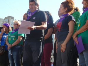 Entonces, quiero decir en principio que en todo el mundo las mujeres nos estamos organizando para salir a la calle ese día, en marcos de unidad importante, como lo venimos haciendo desde hace muchísimo tiempo para seguir denunciando las distintas formas de violencia que sufrimos las mujeres que tienen su máxima expresión en los femicidios -de los cuales este año se ha hablado tanto y se sigue hablando, porque lamentablemente siguen incrementándose en números- y ante lo cual nosotras nos hemos movilizado en la Argentina el 3 de junio y hace poquito lo volvimos a hacer multitudinariamente, no solamente con las mujeres de las organizaciones sindicales, sino de las organizaciones sociales y políticas, y muchas mujeres sueltas, para decir “basta”, este famoso tema de “ni una menos” que se ha replicado en todo el continente y el resto del mundo.