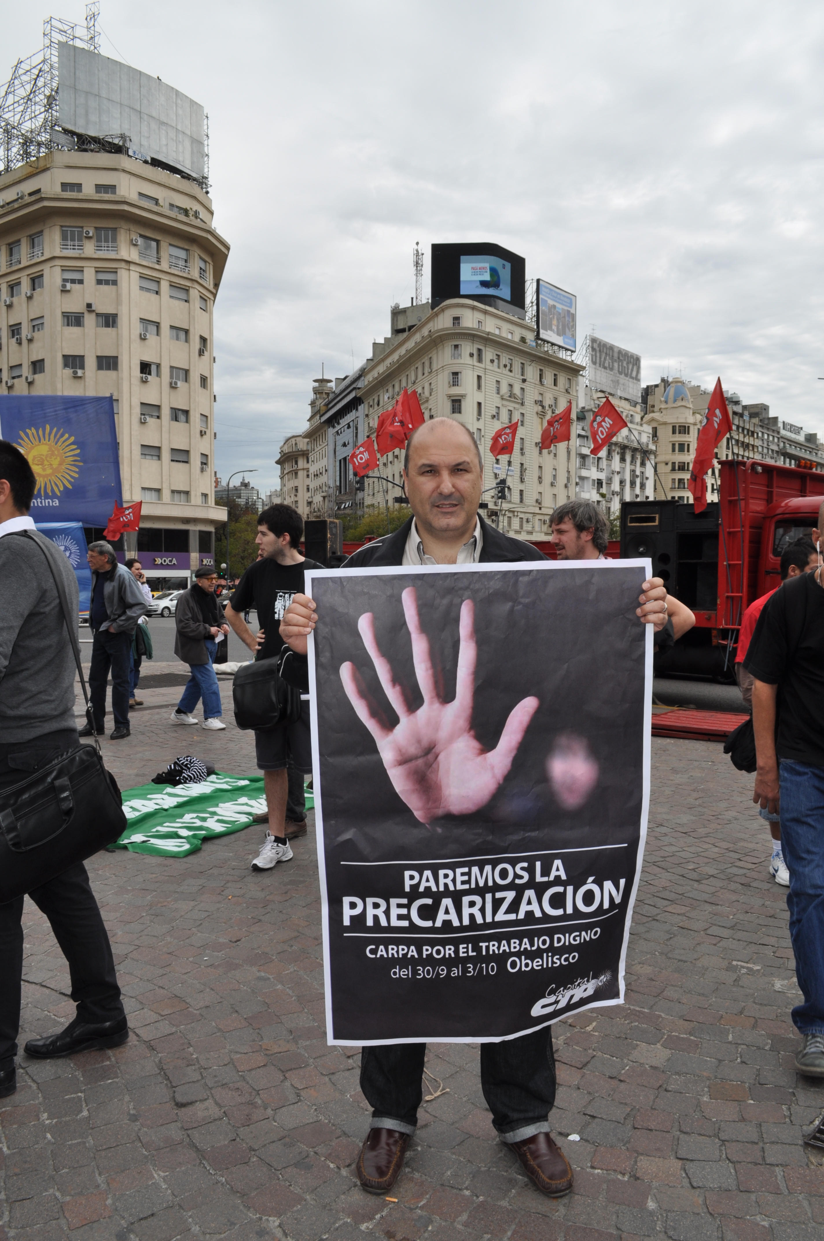 La CTA junto a otras organizaciones lanzan la Campaña ¡Paremos la Precarización! En el marco de esta iniciativa se instaló la Carpa por el Trabajo Digno frente al Obelisco (Av. Corrientes y 9 de Julio) que estará desde el martes 30 de septiembre hasta el viernes 3 de octubre.