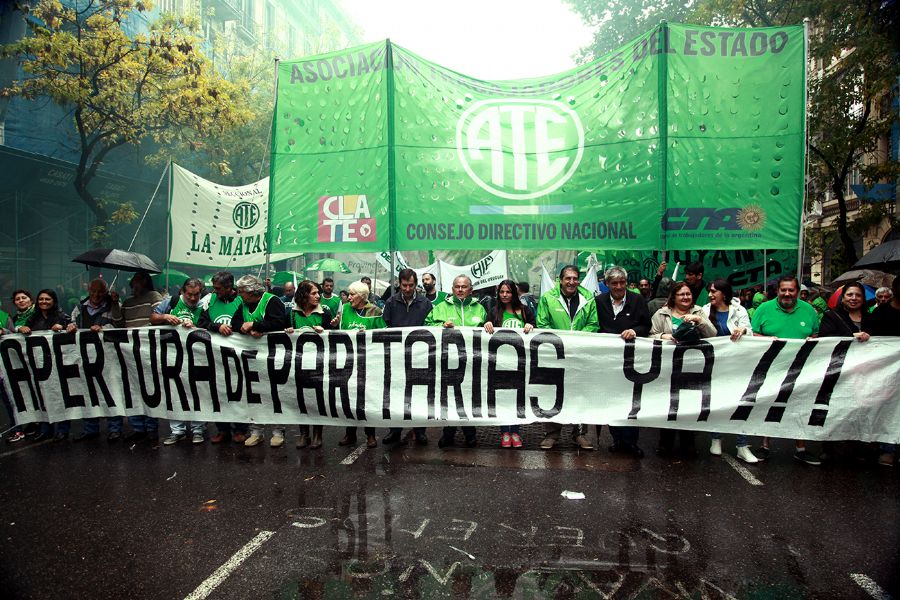 En las capitales de todo el país, los trabajadores y trabajadoras estatales se movilizaron en el marco del Paro Nacional. En Capital Federal las columnas de ATE marcharon desde la intersección de las Avenidas de Mayo y 9 de Julio hasta el Ministerio de Modernización. Exigieron el adelantamiento de las paritarias nacionales “sin techo” y “con un piso del 38%” que recomponga el salario, y rechazaron las políticas de ajuste.