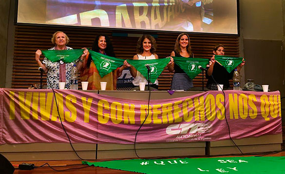 Organizada por la Secretaría de Género de la CTAA junto a Canal Abierto, se realizó esta tarde la primera edición de las charlas en Verde y Violeta. Un anfiteatro colmado de varones y mujeres debatió durante varias horas sobre feminismos.