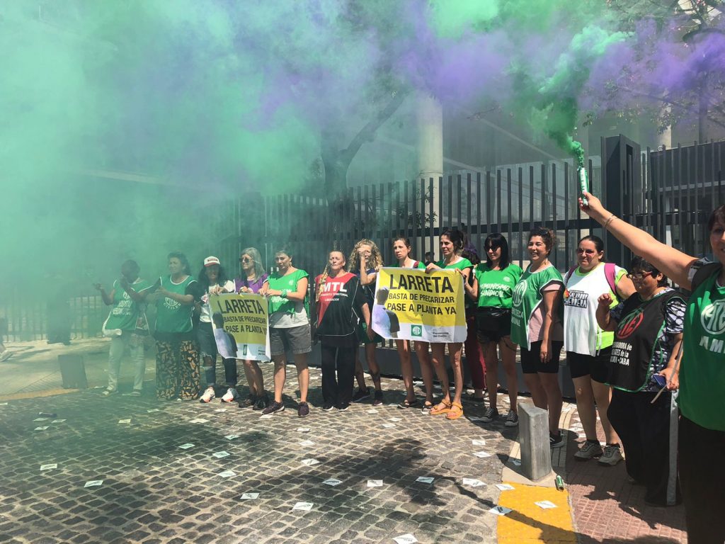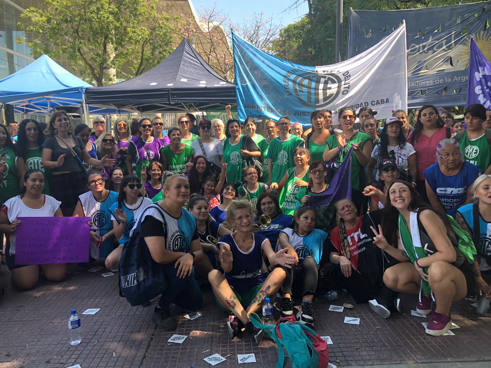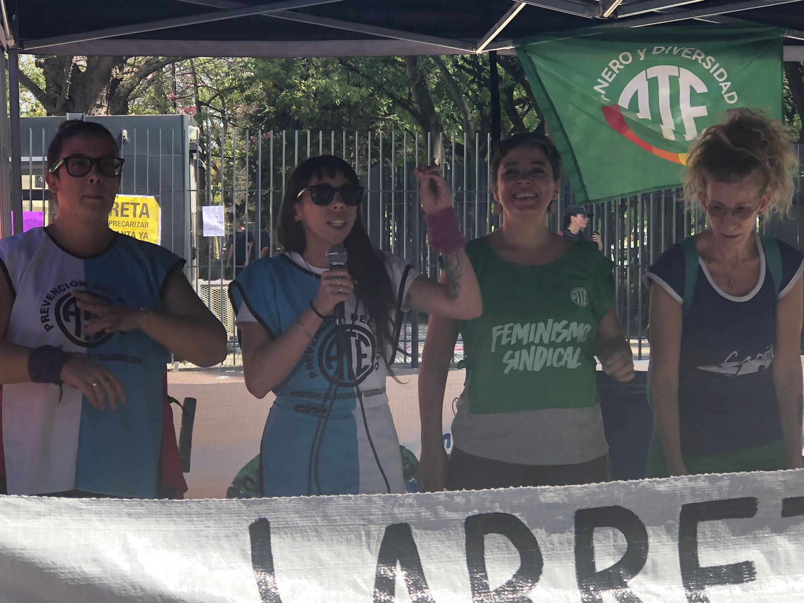 Al final de la actividad hubo un acto donde se abrió el micrófono para todas las compañeras que quisieran expresarse. Allí, Belén agregó: “Hoy nos encontramos acá pretendiendo ser escuchadas por un Gobierno de la Ciudad que más que empleadas nos tiene esclavizadas, con un sistema laboral totalmente asfixiante, donde la devolución económica por nuestro trabajo está por debajo de la línea de pobreza; donde la contratación a través de AFIP es una herramienta excelente para seguir haciendo más ricas las cajas de la Ciudad, pero no así para los bolsillos de las trabajadoras, donde el desgaste para llegar a fin de mes es el objetivo de los funcionarios”.