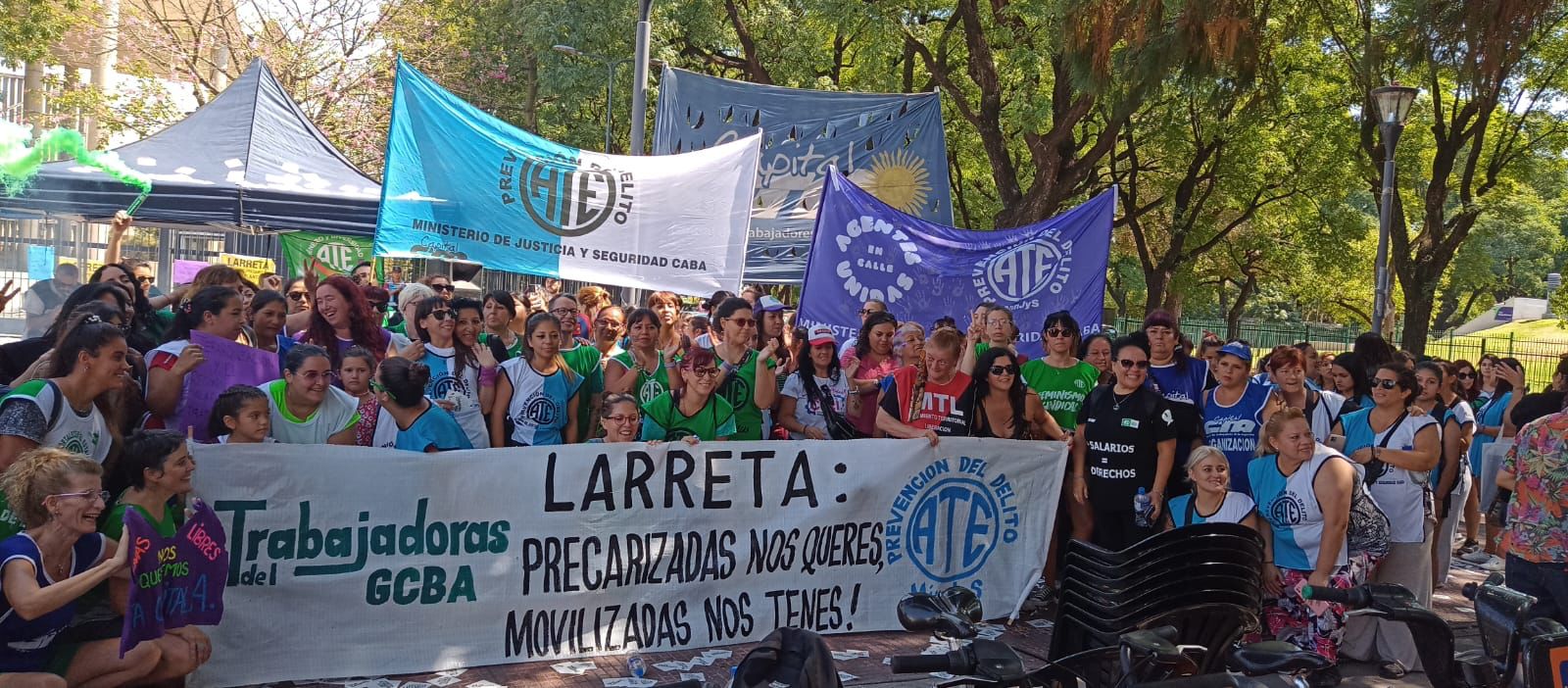 Belén Mariani, secretaria General de la Junta Interna de ATE-CTAA en Prevención del Delito GCBA -que pertenece al Ministerio de Justicia y Seguridad- explicó: “Hoy estamos acá reunidas compañeras del sector, más compañeras de distintos sectores de la Ciudad y de Nacionales, para reclamar contra la violencia laboral que vivimos. En el caso de Prevención del Delito, es un sector que se formó hace más de una década, donde todas nos encontramos totalmente precarizadas, bajo la contratación de monotributistas y con un salario por debajo de la línea de pobreza. Hoy estamos acá para decir que ‘no más’.”