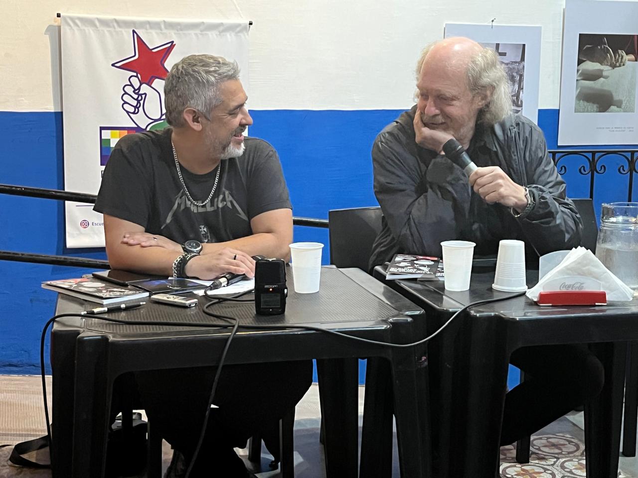 Al finalizar la charla, que tuvo formato de entrevista y que recorrió la historia del rock a lo largo de la dictadura y primeros años de democracia, se abrió el micrófono para que las compañeras y compañeros presentes también pudieran hacer preguntas.