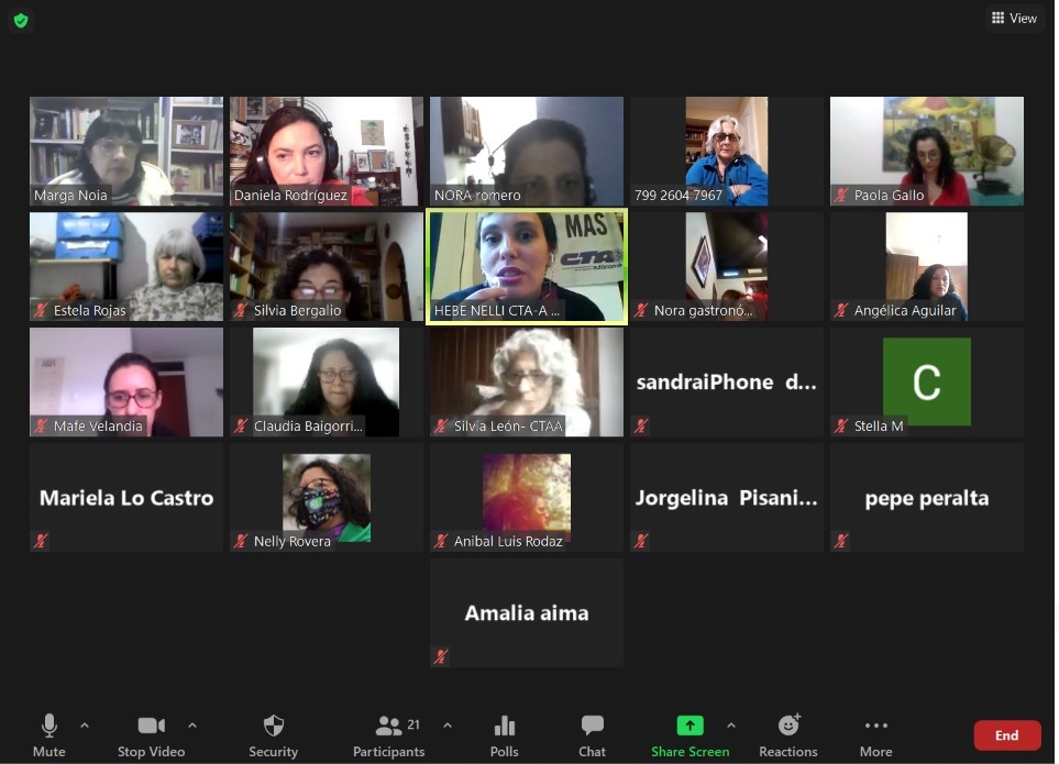 Como cierre de la actividad, Margarita Noia, Secretaria de Derechos Humanos de la CTAA Capital, volvió a agradecer a nuestras invitadas especiales, corresponsales de un paro que lleva más de 19 días; remarcó la importancia de la unidad en la acción de tan diversos sectores sociales movilizados y fue contundente al criticar a los gobiernos represivos como el de Duque “que en lugar de buscar el diálogo, lo único que hace es reprimir brutal y sistemáticamente al pueblo colombiano, produciendo asesinatos, detenciones y actos de violencia sexual contra las mujeres”. En relación a lo cual expresó que “en la Argentina, este tipo de violencia fue parte del plan sistemático del Terrorismo de Estado y que demandó más de 40 años de lucha llevar esos casos a juicio, a pesar de que la Violencia Sexual es un crimen de lesa humanidad”.