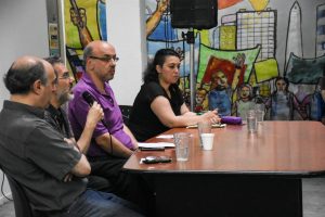 La apertura de la charla estuvo a cargo de Alejandro Bassignani, Secretario General del SiTOS-CTA, quién expresó: “Esta actividad pretende dar un puntapié inicial a la conmemoración del centenario a la Semana Trágica. El 2 de diciembre de 1918 empezaron las huelgas en los Talleres Vasena, por eso quisimos hacer esta actividad en diciembre también. Esta charla debate junto con la muestra de Rodolfo Fucile, son el puntapié para un año de conmemoraciones. Además, pensamos en conjunto con la CTAA Capital y otras organizaciones, la idea de sumar voluntades para mantener una memoria sobre nuestra historia como clase trabajadora y lo que significó la Semana Trágica en ella.”