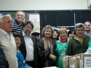 Iturraspe_Lozano_Victor_jubilados_firmasEncabezada por la diputada nacional de la CTA mandato cumplido y vicepresidenta de Unidad Popular de la provincia de Buenos Aires, Graciela Iturraspe, una delegación argentina viaja hoy rumbo al Vaticano para interesar al Papa Francisco sobre el proyecto de Seguridad Social, presentado por Víctor De Gennaro en el Congreso de la Nación y que aún espera su tratamiento.
