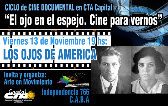 Este ciclo funciona todos los viernes de noviembre a partir de las 19 horas en la sede de la Central porteña, Avenida Independencia 766 y cuenta con un cine-debate con la presencia de los directores de las películas. Este viernes 13 de noviembre se proyectará el film Los ojos de América, de Daiana Rosenfeld y AnÍbal Garisto