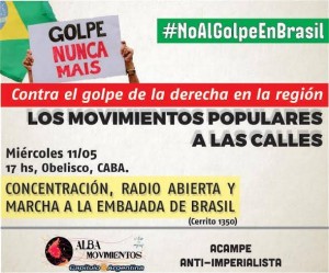Frente al avance de la derecha en Nuestra América y el golpe blando en Brasil, los movimiento populares de Argentina salimos a las calles para rechazar el juicio político. La ofensiva política, judicial y mediática sobre el gobierno de Dilma tiene consecuencias graves en lo social y en lo económico, desatando una política represiva hacia los sectores populares.
