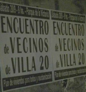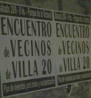 El próximo sábado 20 de septiembre se llevará a cabo el Primer Encuentro de Vecinos de la villa 20 de Lugano. El mismo se desarrollará desde las 9.00 en el Parque de la Victoria, frente al desalojado Barrio Papa Francisco.