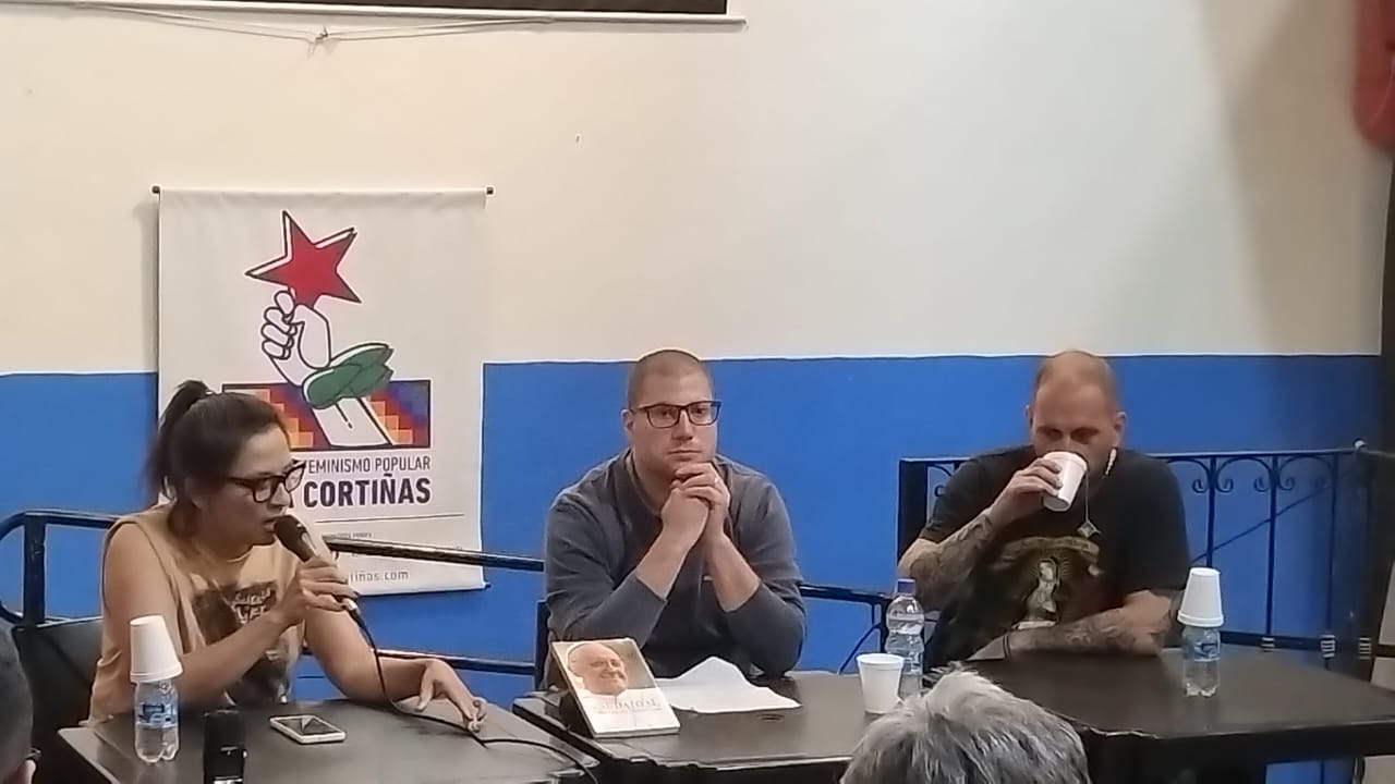 “Amerita una discusión sobre la importancia de la figura de Francisco, pero también me parece inspiración para la constante autoformación nuestra como Pueblo y como militantes sindicales, por eso me parece de importancia la presentación de este libro y tener esta charla como disparador de los debates de la práctica cotidiana de nuestra lucha sindical para tansformar la realidad. También vamos a pedirle unas palabras a Silvina Silva, delegada gremial con una vida compometida ligada a lo territorial y a los curas villeros.”