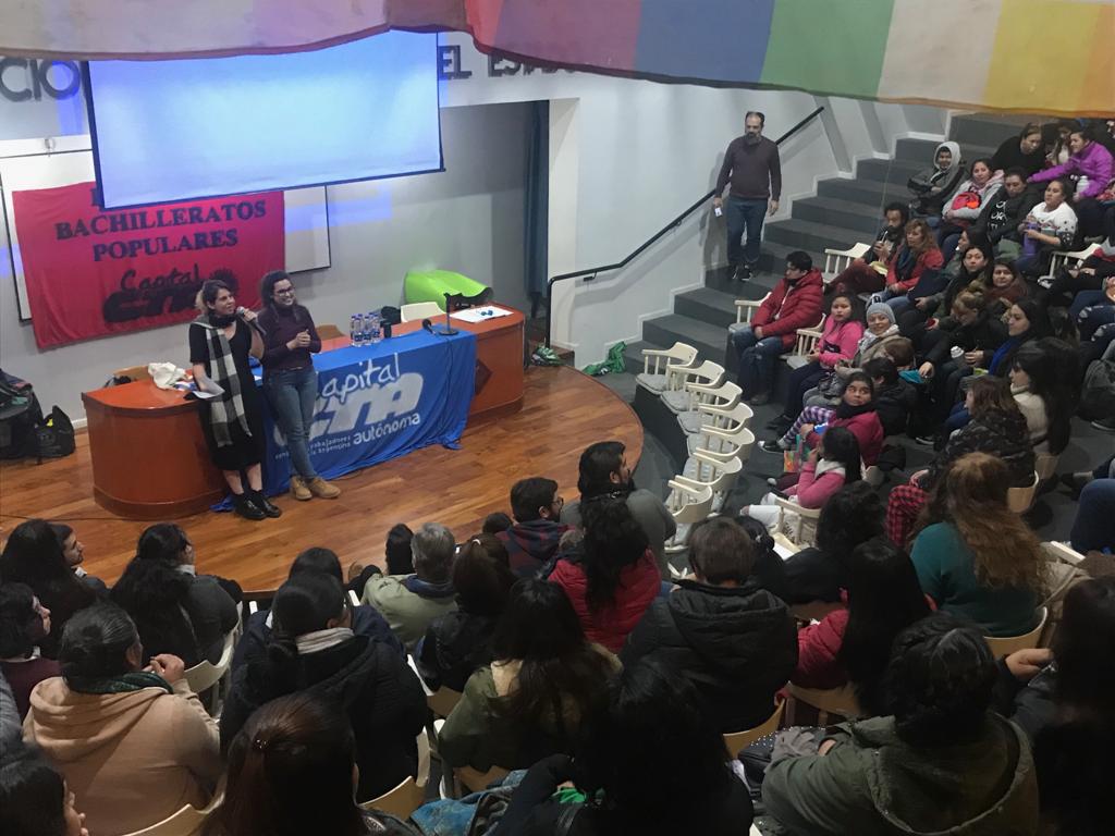 Se realizó ayer, en el Anfiteatro Eva Perón de ATE Nacional, el Primer Encuentro de Estudiantes, Educadores y Educadoras del Frente de Bachilleratos Populares de la CTAA Capital. Participaron del mismo profesores, profesoras, alumnos y alumnas de los Bachilleratos Populares Salvador Herrera, ubicado en el Barrio Pirelli/Lugano; Miguelito Pepe, de Constitución; Alberto Chejolán, del Barrio Padre Carlos Mugica-Villa 31, y Sol del Sur, ubicado en el Barrio Los Piletones.