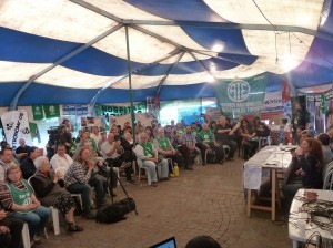 El encargado de abrir la charla fue Pepe Peralta, quien expresó: “Lo que nació como una iniciativa que pensamos mucho, que nos parecía una enormidad mantenerla cuatro días, nos fuimos convenciendo de la necesidad de esto y hoy estamos en el 7mo día de carpa instalada y en este marco nos da ganas de seguir la pelea, como la seguimos siempre.”
