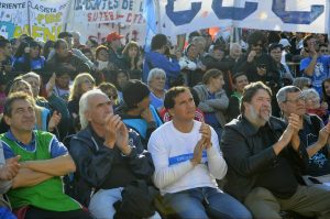 En representación de los trabajadores estatales, Hugo «Cachorro» Godoy, convocó a movilizar el próximo 11 de agosto en el marco de la Jornada Nacional de Lucha de la CTA Autónoma: «Sin duda el símbolo de San Cayetano es un termómetro social. Por lo tanto, que hoy haya esta masa impresionante de trabajadores -fundamentalmente jóvenes- que unen la lucha contra la pobreza con la lucha por «Tierra, Techo y Trabajo», sin ninguna duda hace que los trabajadores estatales estemos en esta convocatoria de la CCC, la CTEP y Barrios de Pie. Porque además estos sectores de trabajadores: desocupados, subocupados, cuentapropistas, los precarios, los cooperativistas son los que más están sufriendo esta exclusión hacia la pobreza que genera la política de Macri».