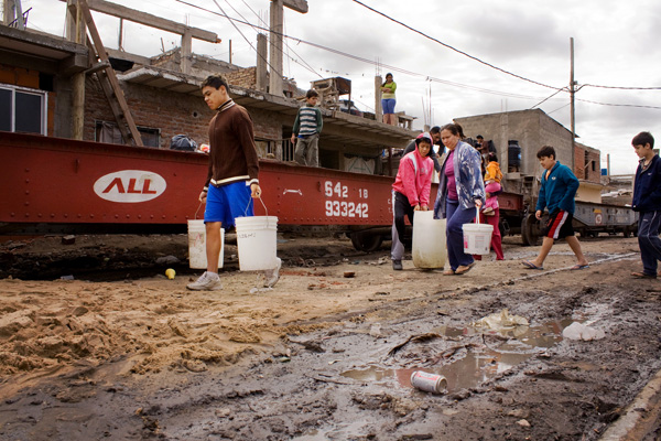 Para paliar esta situación, todos los trabajos internos de caños de agua o cloaca lo hacen nuestros vecinos. Aysa, que tendría que proveernos de hacer el trabajo, no entra en las villas, solo en las calles que figuran en catastro, por lo cual la presión del agua es escasa y en algunos lugares hay solo de madrugada. Razón por la cual la gente junta el agua en tachos y bidones.