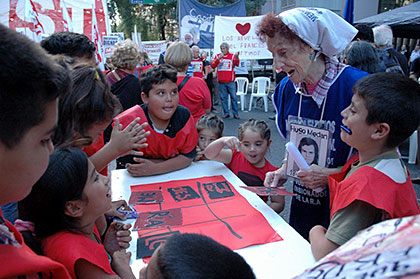 Mientras los niños y niñas de «Che Pibe» jugaban a la rayuela y otros juegos en la calle frente al Congreso, los diferentes oradores iban dejando su saludo y solidaridad con una lucha que es de todos. Así pasó Oscar Quintas, jubilado de FeTERA, que viajó desde Mar del Plata para estar presente: “Cada uno de estos chiquitos son potenciales jubilados”, dijo Quintas señalando a los chicos.