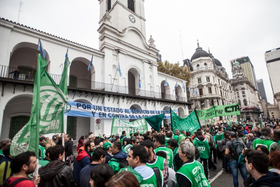 Luego de cortar la General Paz y Constituyentes, las trabajadoras y trabajadores del INTI arribaron a la Plaza de Mayo. También nutrieron la jornada las y los militantes de ATE con sus cuerpos de delegados y juntas internas de provincia de Buenos Aires y Capital Federal, de los sectores de Salud, Educación, Desarrollo Social, del IOSFA, Cultura, del CONICET, del INDEC, de Astilleros, del Hospital Francés nacionalizado en el PAMI, entre otros.