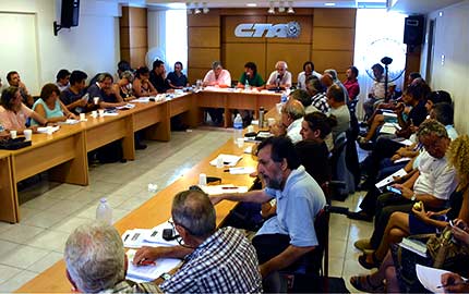 El miércoles 17 de febrero se reunió la Mesa Nacional de la CTA Autónoma con presencia de la Comisión Ejecutiva Nacional, Secretarios Provinciales y Secretarios Generales de las organizaciones nacionales, con importante presencia de sindicatos del sector privado. Durante toda la jornada se debatió sobre el paro nacional con movilizaciones en todo el país, convocado por los estatales de ATE, FESPROSA, CONADUH y Judiciales para el próximo 24, que cuenta con el acompañamiento de toda la CTA y de los gremios que la integran.