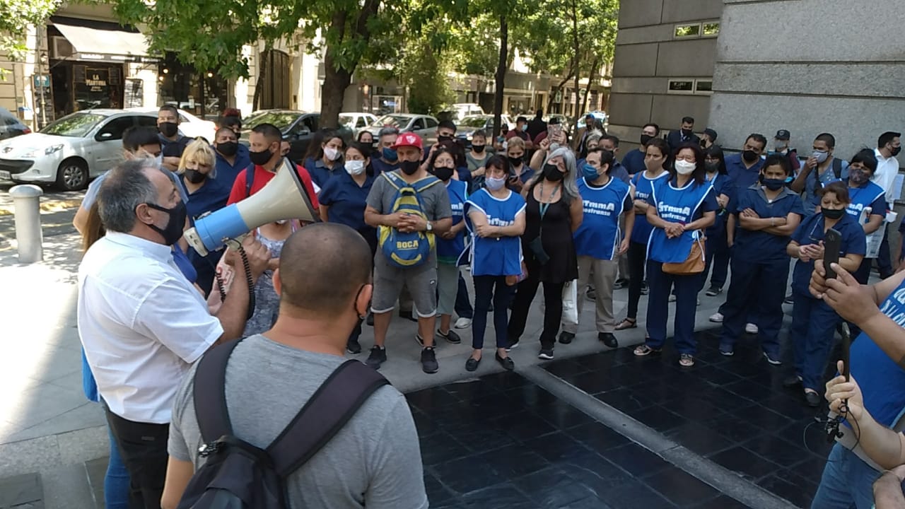 Mariana Castro, secretaria General del SiTMMa-CTAA, agregó: “Hoy las y los trabajadores tercerizados de limpieza y mantenimiento que prestamos servicio en Cancillería a través de la empresa La Mantovana SA, nos encontramos en la puerta de Cancillería Argentina – donde algunos de nosotros trabajamos hace 20 años- reclamando porque la empresa nos aplicó un acuerdo por suspensión que no corresponde, con la excusa de que hay quienes no venimos a trabajar, siendo que está restringida nuestra actividad por razones de riesgo sanitario. Así, a la crisis que estamos atravesando todos, a nosotros se nos suma que cobramos el 75 por ciento del sueldo, la empresa liquida mal nuestros haberes (siempre a la baja) y no están pagando los aguinaldos, a pesar de haber cobrado siempre en tiempo y forma por sus servicios al Estado Nacional”.