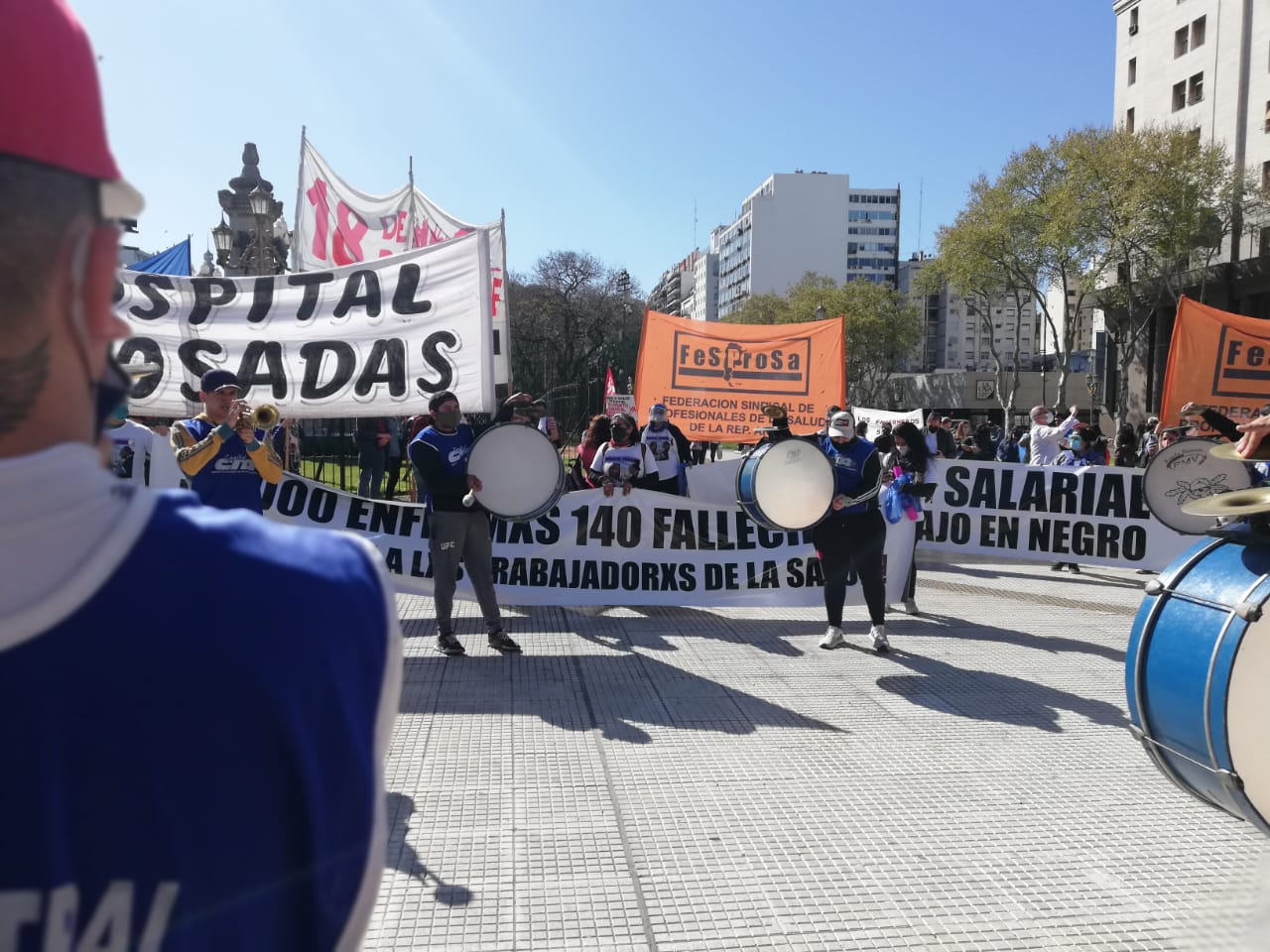 Con acciones en todas las provincias y un acto frente al Congreso Nacional, cumpliendo las medidas dictadas por la autoridad sanitaria, Fesprosa, SITOS, GOA y cuarenta organizaciones de salud concretaron una jornada de lucha en todo el país por mejoras salariales y medidas de protección durante la pandemia.