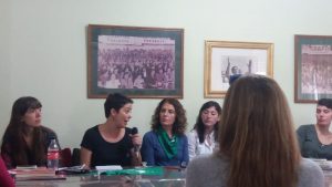 “Nos pusimos en común, en este territorio que nos propone este feminismo de clase y popular: TRABAJADORAS SOMOS TODAS. Esta idea puede resumir la conversación que compartimos con mujeres de las centrales sindicales de la Argentina, alrededor de la presencia y la palabra de Silvia Federici, «La bruja mayor». Así logramos un paso más en el desafío de fortalecer espacios de unidad de acción en la lucha para enfrentar esta etapa de profundización y avance del neoliberalismo en la región y de articulación de estrategias desde el feminismo para fortalecer la participación de las mujeres en sus organizaciones, buscando transformar estructuras que nacieron patriarcales y entonces reproducen la subordinación de las mujeres”, explicó Clarisa Gambera, acerca del encuentro con la escritora feminista.