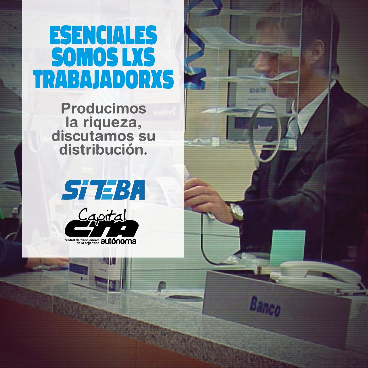 El Equipo Gremial de la CTAA Capital lanzó el pasado martes 9 de junio la campaña «Esenciales somos los trabajadores. Producimos la riqueza, discutamos su distribución». La misma busca desarrollar y fortalecer la organización sindical en los lugares de trabajo, para poder disputar -aún en el marco de la pandemia- la distribución de las riquezas que generan las trabajadoras y trabajadores. A continuación se difunde una nota que aporta el Sindicato de Trabajadores de Entidades Bancarias (SiTEBA-CTAA) para esta campaña.