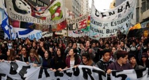 Sin respuestas, los estudiantes secundarios de 14 escuelas porteñas realizan un corte en Callao y Corrientes en reclamo de un programa integral de reformas edilicias y contra los cambios curriculares que evalúa el gobierno de la Ciudad. Piden ser recibidos por el ministro de Educación porteño, Esteban Bullrich.