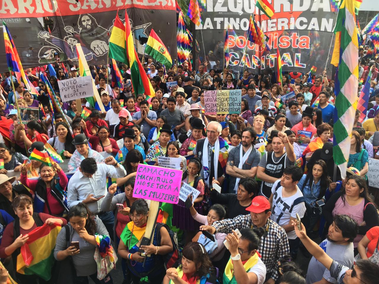 La marcha, convocada por las comunidades bolivianas en Argentina y abrazada por las organizaciones y movimientos sociales, fue en apoyo al presidente Evo Morales, quien fue reelecto en los últimos comicios pero igualmente enfrenta cuestionamientos por parte de la oposición, que pretende desconocer la voluntad popular expresada en las urnas, con arteras maniobras políticas y mediáticas.