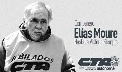 La CTA Autónoma expresa su profundo pesar ante el fallecimiento del entrañable compañero Elías Moure, histórico dirigente del Plenario Permanente de Organizaciones de Jubilados y fundador de la Federación Nacional de Jubilados y Pensionados (FETRAJUB-CTA).