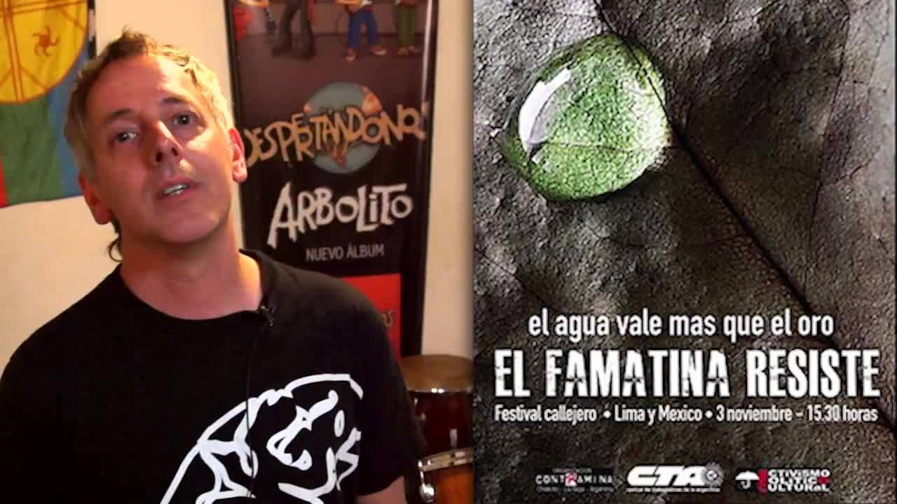 El disco nace de la experiencia vivida en el corte, fui con músicos amigos a tocar y acampar y cuando volvimos después de vivir, de sentir , de respirar esa heroica resistencia de todo un pueblo, parados y decididos a dejar todo en la lucha, quiero decir que fue tan conmovedor que apenas llegue empecé a comunicarme con amigos compositores y músicos que sabía que habían hecho algún tema para el Famatina, con la idea de plasmarlo en un disco para que quedara ese testimonio de la canción, ese abrazo de canciones que es el disco, que por la cantidad que se fueron sumando tuvo que ser doble. Algunos referentes como Ramón Navarro, las palabras de Pérez Esquivel para el arte del disco, Arbolito y Lovorne de Buenos Aires, fue un aporte increíble para este material conformado en su gran mayoría por compositores e intérpretes riojanos, por artistas plásticos que aportaron sus obras para el arte. Agradecer creo ya estaría demás porque estamos todos comprometidos hasta las vísceras con la causa, si agradecer a ATE Chilecito y a la CTA Regional Oeste, agradecer el aporte y apoyo de Víctor Carrión, excelente músico riojano radicado en Buenos Aires y de todas y cada una de las bandas. Este disco se hizo gracias a cada uno de los artistas que lo componen, yo solo fui el nexo aglutinante, siento un orgullo que no me cabe en el cuerpo por haber laburado en la producción de este disco y me emociona saber que sirve también para colaborar en otras causas nobles, en defensa de nuestros bienes comunes.