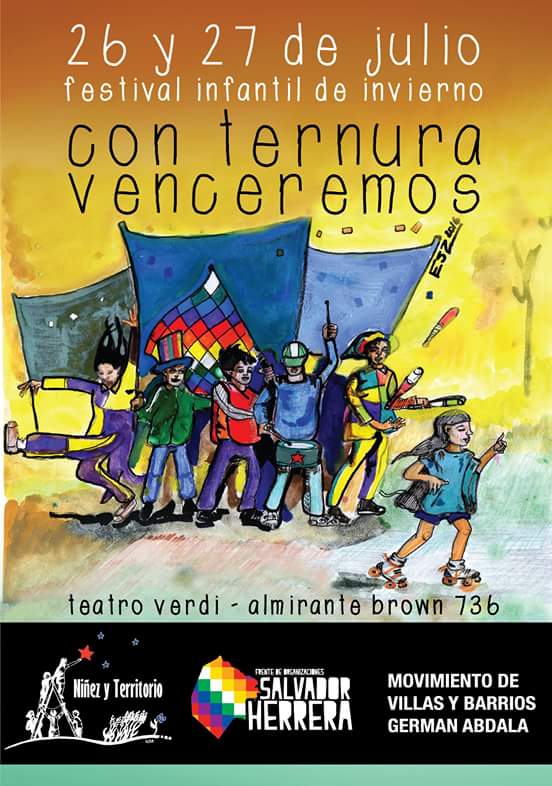 13813663_746497852120480_1170432465059152624_nLa CTA Capital, Niñez y Territorio, el Movimiento de Villas y Barrios Germán Abdala y el Frente Territorial Salvador Herrera realizarán el martes 26 y el miércoles 27 de julio el Festival Infantil de Invierno ‘Con ternura venceremos’, en el Teatro Verdi, en el Barrio porteño de La Boca.