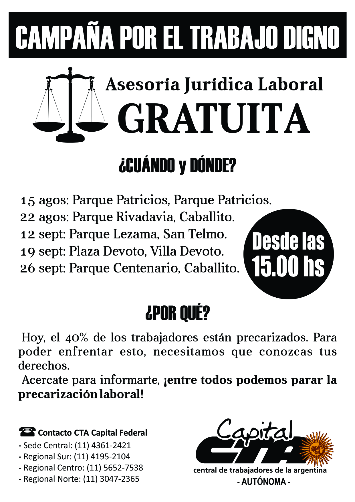 El objetivo de la Campaña, que arrancó el pasado 15 de agosto, fue difundir en distintos barrios de la Ciudad de Buenos Aires la situación de precariedad laboral que padecen hoy el 40% de los trabajadores y que los vecinos pudieran informarse sobre sus derechos laborales.