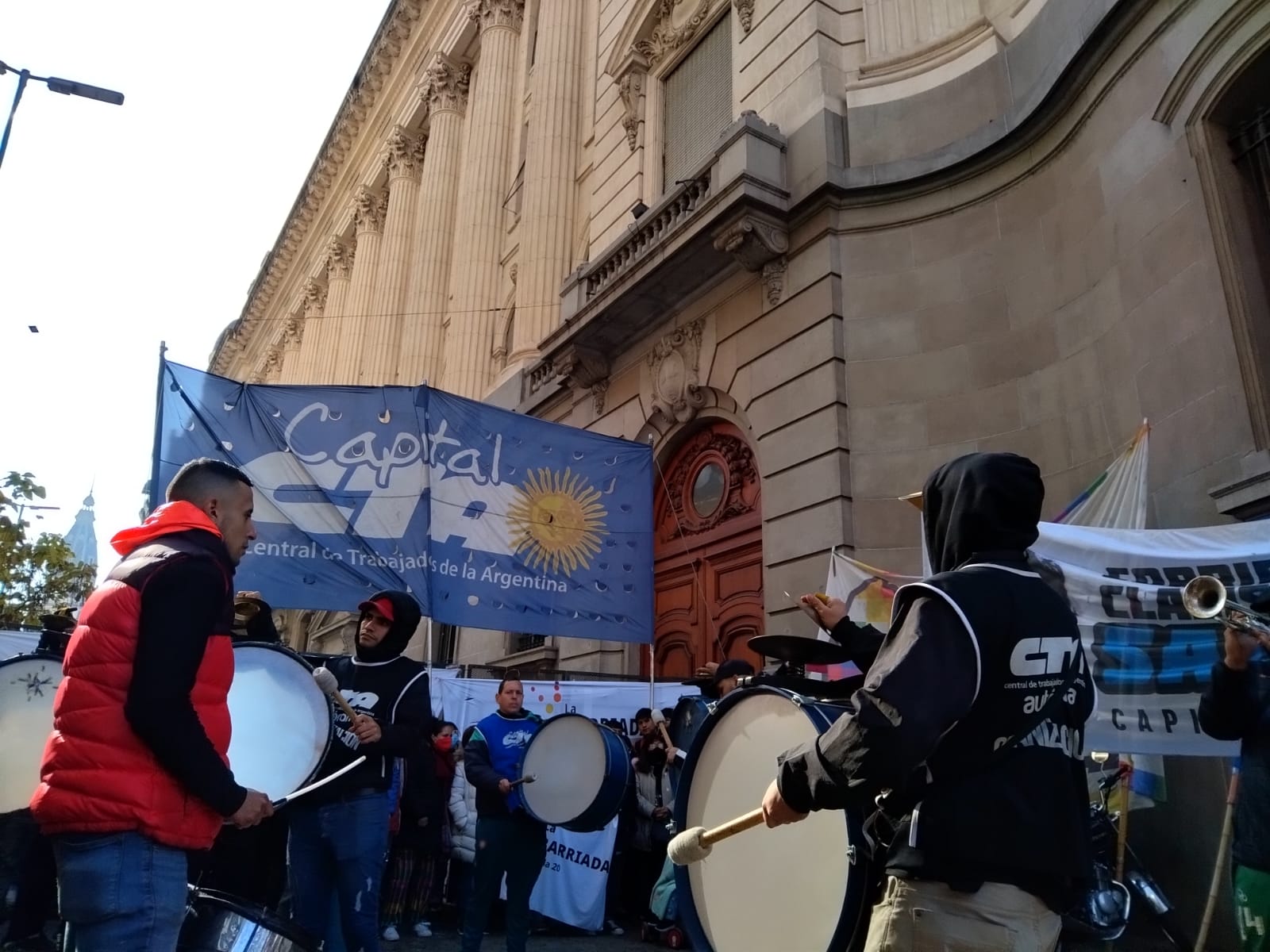 En contraposición, la CTAA Capital junto con organizaciones hermanas se concentraron a las puertas del palacio legislativo para exigir una paritaria social, políticas activas de creación de empleo y fortalecimiento de la economía popular, y el veto del proyecto oficialista.