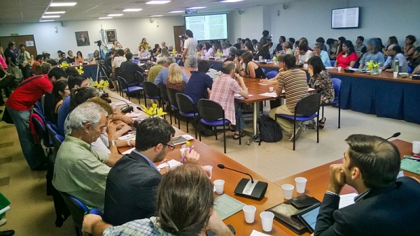 En el edificio anexo del Congreso Nacional y con el marco de una sala absolutamente colmada por especialistas y trabajadores del campo de todo el país, se llevó a cabo una jornada de debate sobre las leyes de semillas y modelo productivo en Argentina. Durante el encuentro, que se extendió por más de 4 horas, se expresaron fuertes críticas tanto a la ley actual de semillas, vigente de 1973, así como al nuevo anteproyecto, que beneficia a las grandes transnacionales productoras de transgénicos.