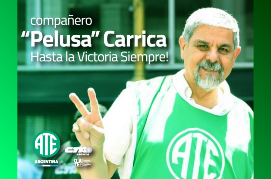 Lamento Informarles a las y los compañeros de ATE y la CTA Autónoma que nuestro compañero Pelusa ha fallecido. Nos ha dejado físicamente para encontrarse con su madre Irma Laciar de Carrica, con su padre y todos sus compañeros y compañeras de lucha, esa cantidad enorme de amigas y amigos de militancia que construyó en el peronismo revolucionario y que nunca abandonó. Y que siempre, con constancia, los sostuvo en la memoria para construir un futuro mejor para nuestro pueblo.