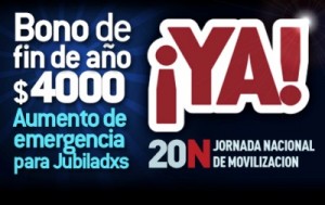 Hoy la Central de Trabajadores de la Argentina hace sentir sus reclamos en cada punto del país. Con una inscripción gremial recientemente estrenada, la CTA redobla su legitimidad como siempre lo hizo en sus 22 años de historia: en la calle, por un bono de Fin de Año de $4000 que nos permita paliar las reducción del salario por la inflación, por un aumento de emergencia para los Jubilados y por la exención del impuesto a las ganancias sobre el aguinaldo.