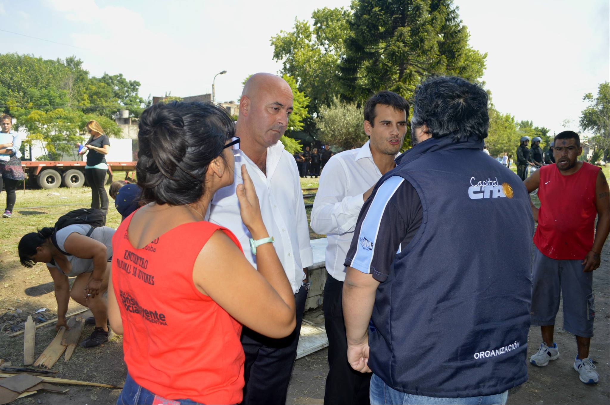 Sergio Val, referente de la Fundación Che Pibe y miembro de la Mesa Nacional de la CTA Autónoma, estuvo presente apoyando la toma del terreno y explicó: “Hay un grupo de 13 familias, con más de 30 chicos, que están alojados acá hace más de un mes. Son familias que no tienen lugar donde vivir, que se vieron forzadas a tomar un pedacito de tierra en un lugar que era un basural. Ellos trabajaron mucho para limpiar este lugar, pero como el Municipio está construyendo una escuela que seguramente la quieren inaugurar en este año electoral, no pueden permitir que haya un rancherío, entonces reprimen para desalojar a la gente.”