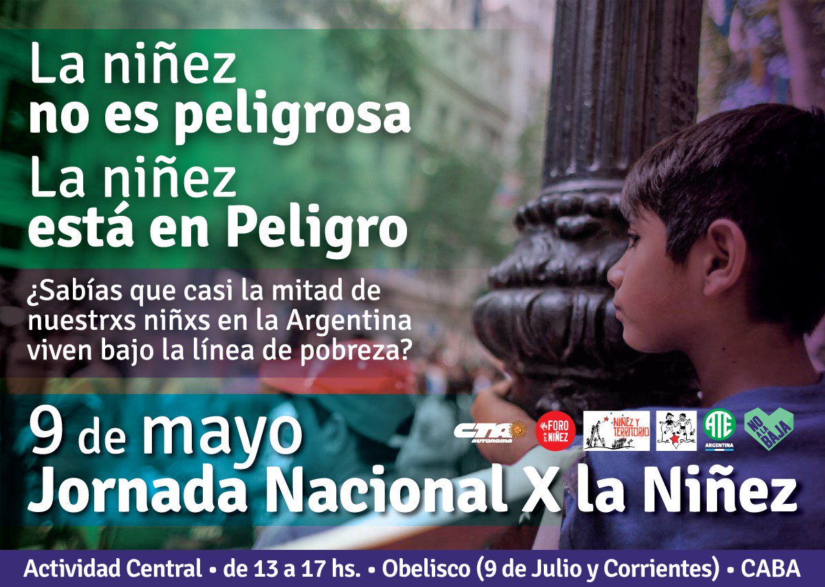 Este martes 9 de mayo en diferentes provincias, municipios, barrios e instituciones del país se realizarán acciones para dimensionar las problemáticas que atraviesan en la actualidad nuestra niñez y para exigirle al Estado respuestas concretas desde la promoción y la protección de derechos.