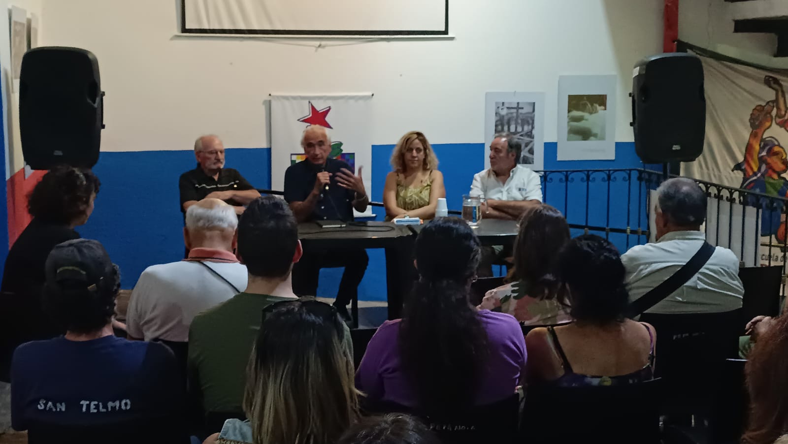 Pasadas las 18 horas, se abrió el diálogo cuando «Pepe» Peralta expresó que «nos sentimos muy contentos de haber coordinado con los compañeros y compañeras del «Club Atlético» para que hoy podamos recibir esta muestra fotográfica tan importante en una de nuestras casas y compartir esta mesa con quienes sí pueden brindar un testimonio más allá de la institucionalidad, porque fueron protagonistas de ese momento. La de los Derechos Humanos es una de las banderas fundacionales de nuestra CTA, es uno de los pilares que se llevan adelante desde el principio y, tomando la característica de que todos somos trabajadores (algunos con derechos, otros sin derechos, precarizados), los derechos humanos están ligados justamente a eso: a los embates del capital por distintos medios contra la clase trabajadora. Por eso y porque los derechos humanos abarcan mucho más que la memoria, es que desde la CTAA Capital ya es una tradición hacer el Mes de la Memoria con distintas actividades».