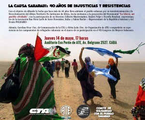 Además, Carolina Ocar, secretaria de Comunicación de la CTA y Silvia León, secretaria de Organización de ATE, compartirán su experiencia en los campamentos de refudiados saharauis en el marco de su participación en el VII Congreso de Mujeres Saharauis.