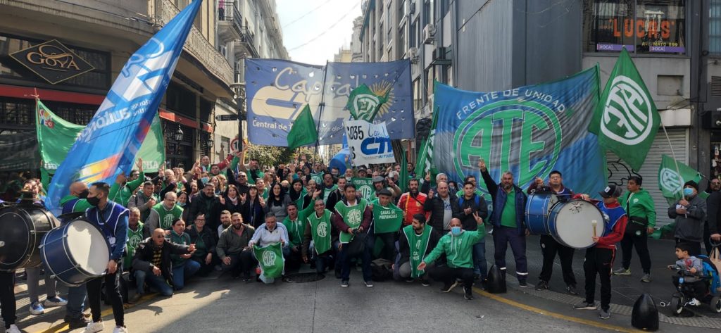 La concentración fue a las 11 de la mañana en la esquina de Avenida de Mayo y Tacuarí. De allí las y los compañeros de la CTAA Capital – junto a la Asociación Trabajadores del Estado, la Federación Sindical de Profesionales de la Salud de Buenos Aires, el Sindicato de Trabajadores de Enfermería y el Sindicato de Trabajadores de la OSPLAD- se movilizaron hastas las puertas de la sede del Poder Judicial de la Ciudad ubicada en Suipacha 150, donde tramita un juicio entre ATE y el Gobierno porteño, por el reconocimiento de la carrera profesional de los trabajadores de la salud.