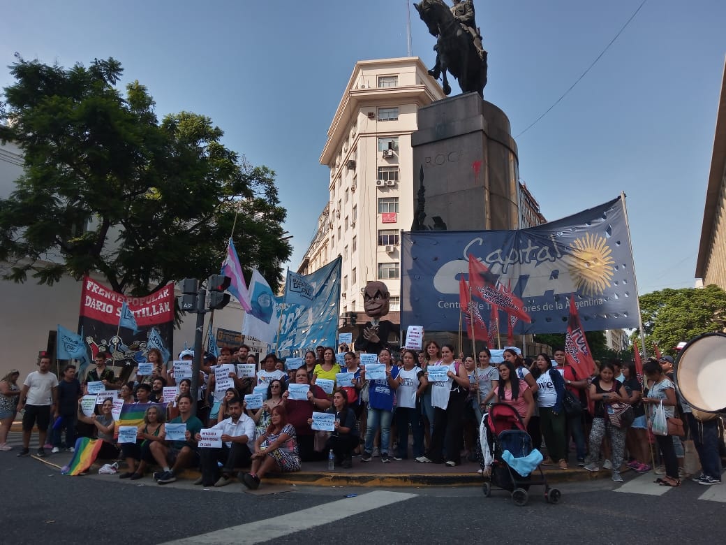 Desde las 8 de la mañana, diferentes organizaciones que componen la CTAA Capital, se concentraron en la esquina de Diagonal Sur y Perú, para estar presentes en el momento de la apertura de las Sesiones Ordinarias de la Ciudad.