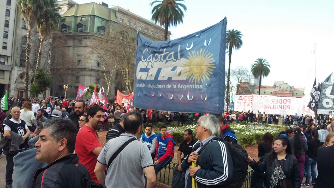En la Plaza de Mayo, junto a la CTA-A, al Encuentro Memoria, Verdad y Justicia, y un amplio arco de organizaciones sociales, políticas y culturales, Luis Medina, trabajador de PepsiCo, dijo: “Venimos con una delegación de PepsiCo, compañeros y compañeras que fuimos brutalmente reprimidos en la puerta de la fábrica por la Policía Bonaerense. Salió en cadena nacional la feroz represión que sufrimos. No solamente los trabajadores de PepsiCo sino todo el barrio y los vecinos cuando a las 3.00 de la mañana llegó un impresionante operativo de Gendarmería Nacional con decenas de móviles, cientos de gendarmes que hicieron un perímetro a doscientos metros a la redonda, y el barrio estuvo sitiado”.